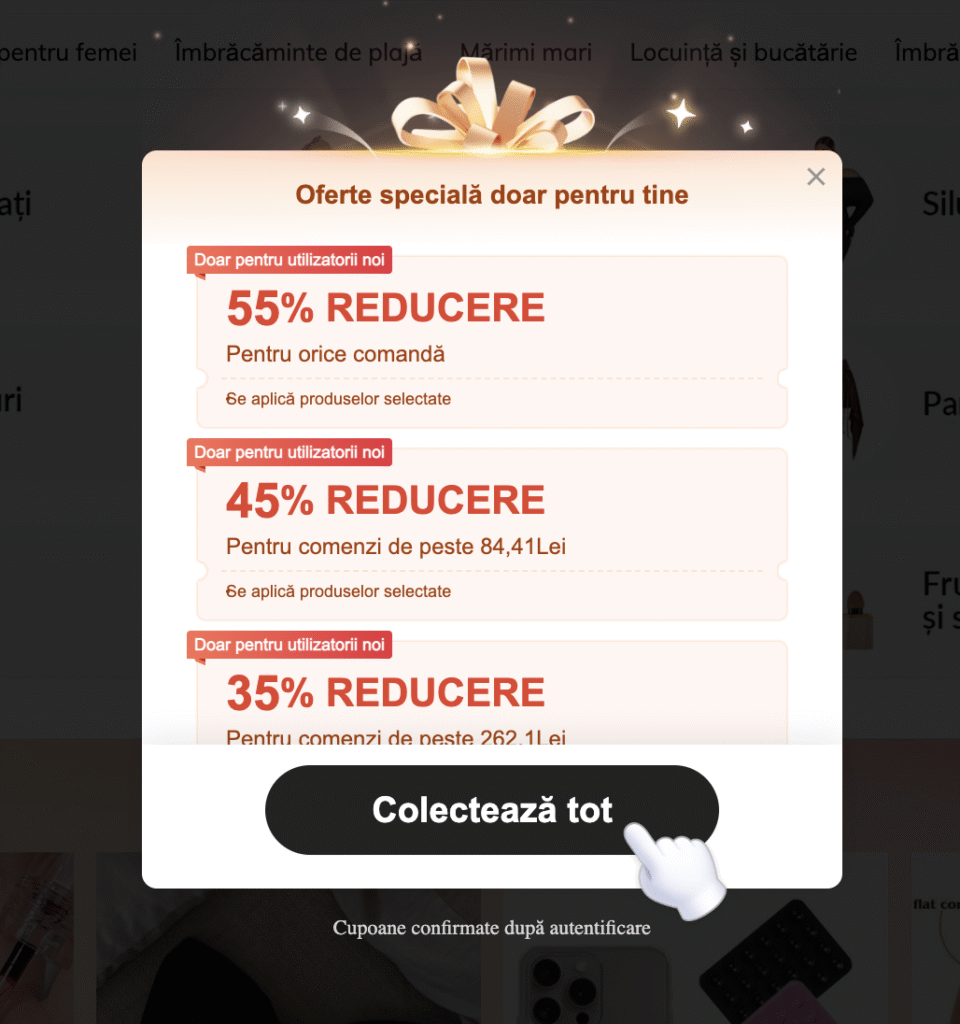 - temu: „grăbește-te, oferta expiră în 14:37 minute”